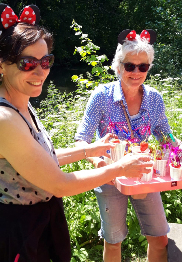En ook nu weer werden we verrast: deze keer met chocolade domtorentjes, aangereikt met een hengel en emmer door de Minnies. Snel genieten dus, want chocolade smelt… Met een tevreden gevoel meerden we aan bij Viking om aldaar de borrelhapjes, inclusief Fruitellabootjes, al te zien staan. Tijdens de gezellige afsluitende jubileumborrel kwam de link naar de Minnies boven water: Minnie bestaat namelijk ook 100 jaar in 2023! Al met al een zeer geslaagde toertocht: wij danken de Minnies hartelijk, en schrijven ons alvast in voor de volgende!