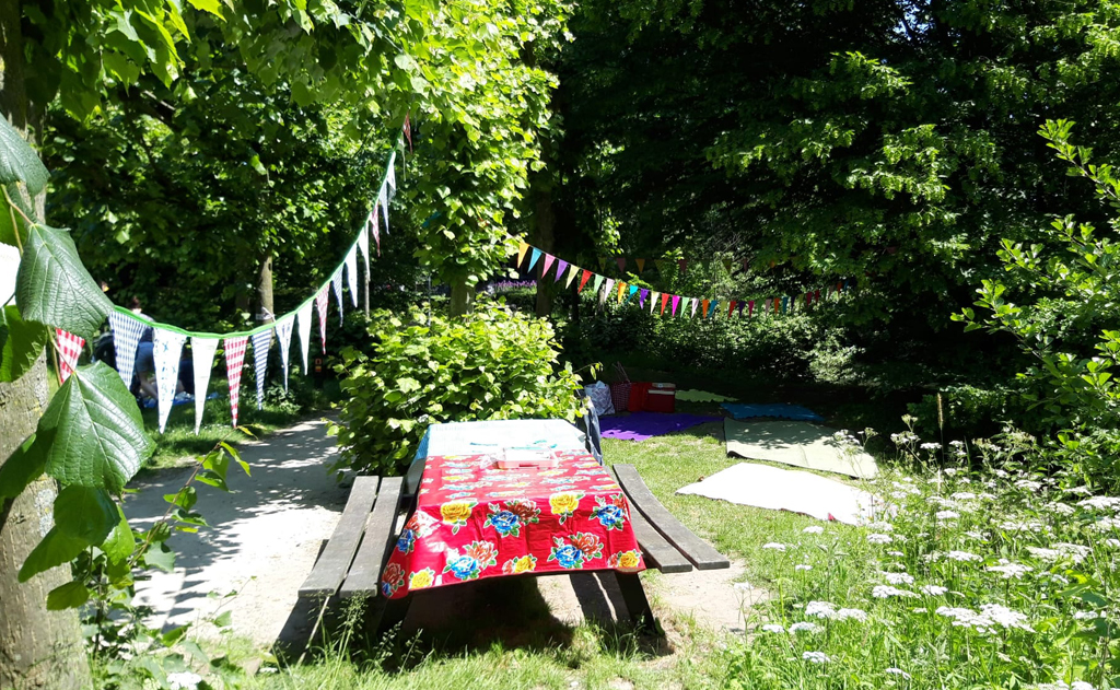 Bij Rhijnauwen werden we wederom vorstelijk ontvangen door de toercommissie (de drie Minnies) en kwamen er opnieuw stukken taart op tafel, kon iedereen even uitrusten en lunchen op een rijkelijk versierde plek in de schaduw, want de zon scheen de hele dag volop! Op de terugweg naar Utrecht werden onze stuurmanskunsten nogmaals goed op de proef gesteld: veel suppers, zwemmers en onervaren huurkanoërs kruisten letterlijk onze weg, soms akelig dichtbij.