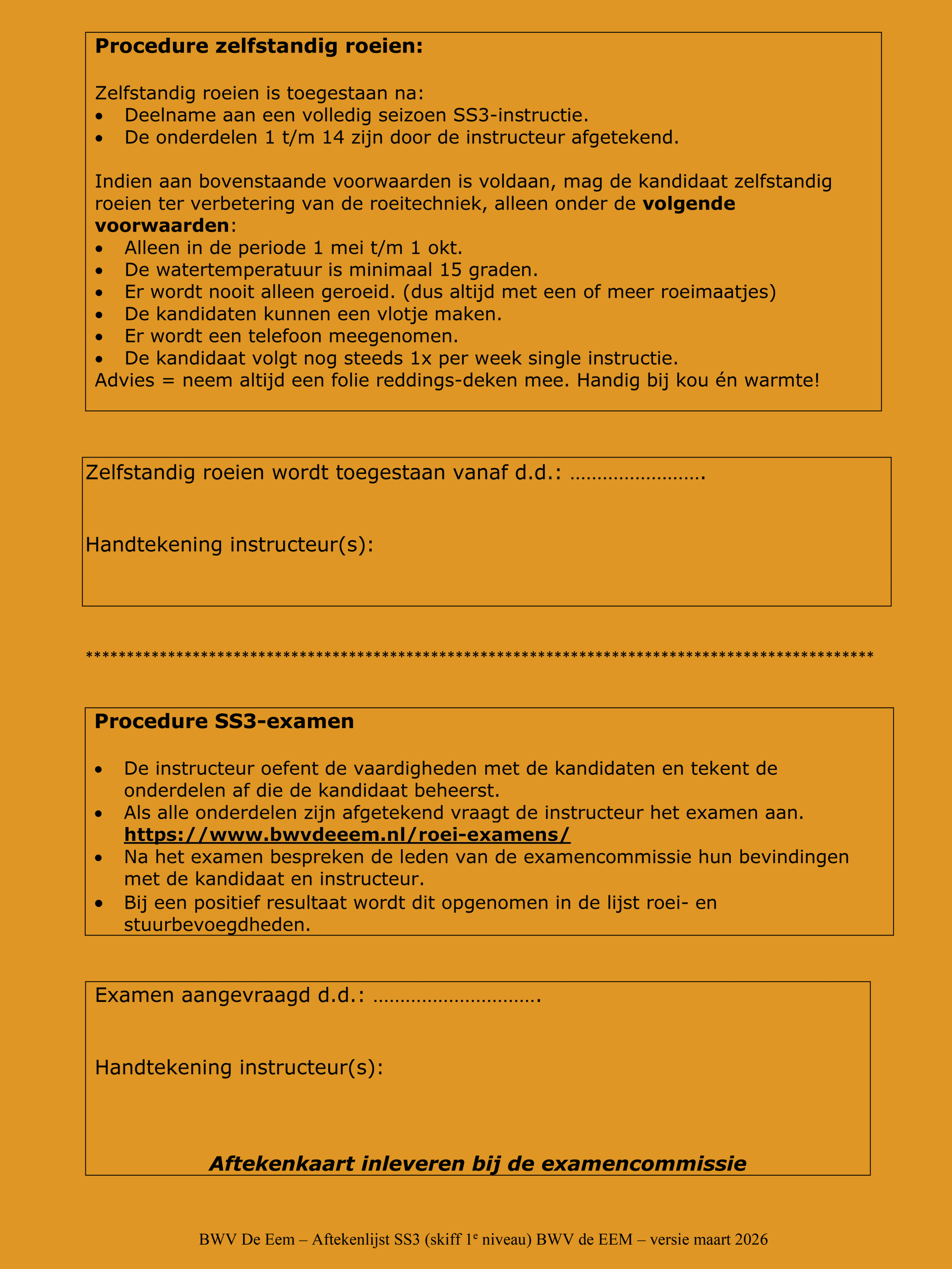 • Extra informatie: 1. Na BO2 kan BO3 los van SS3 worden behaald. 2. Je wordt individueel beoordeeld, in het geval er meer kandidaten in de boot afroeien voor BO3. 3. Er is geen aftekenkaart voor BO3.